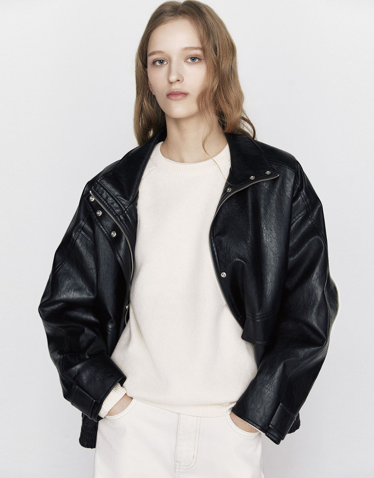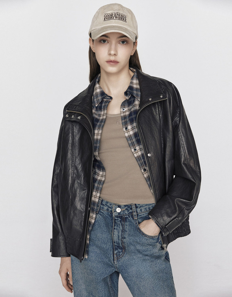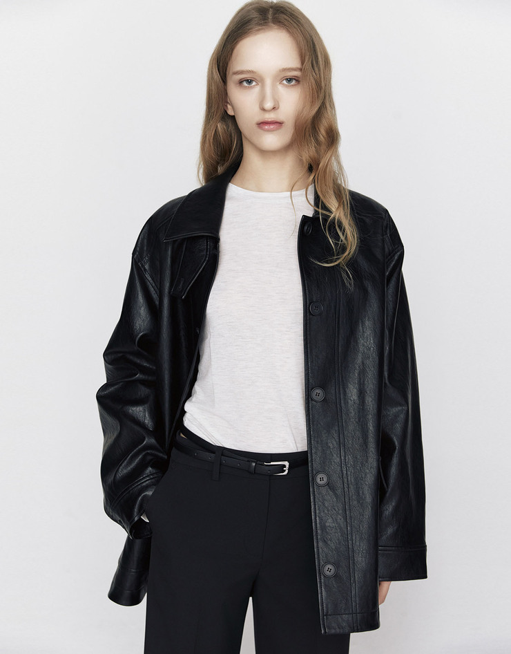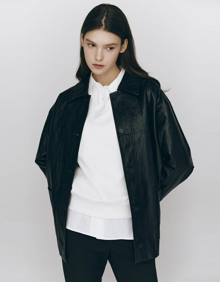 NEW 미들랭스 오버핏 레더 자켓