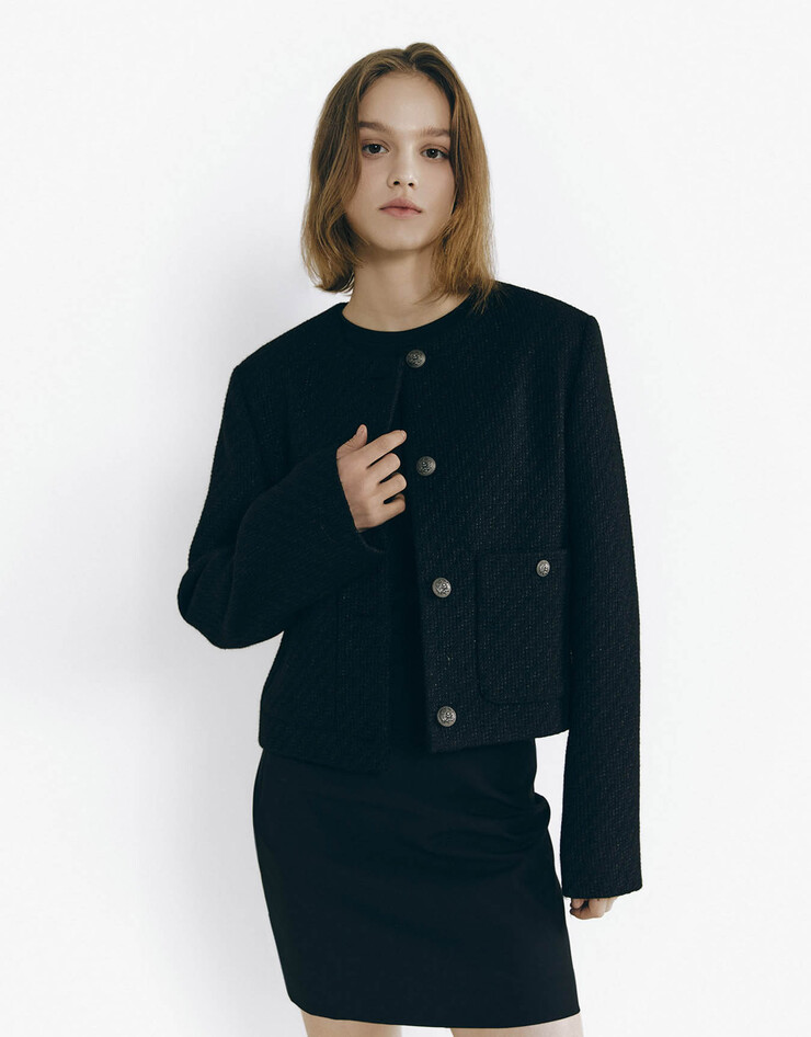 트위드 세미크롭 자켓