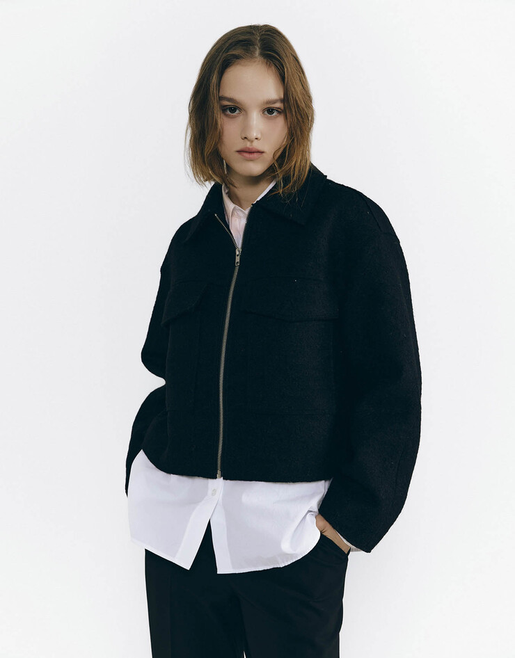 울 블렌드 카라 숏 자켓