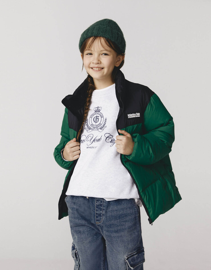 주니어 배색 덕다운 점퍼