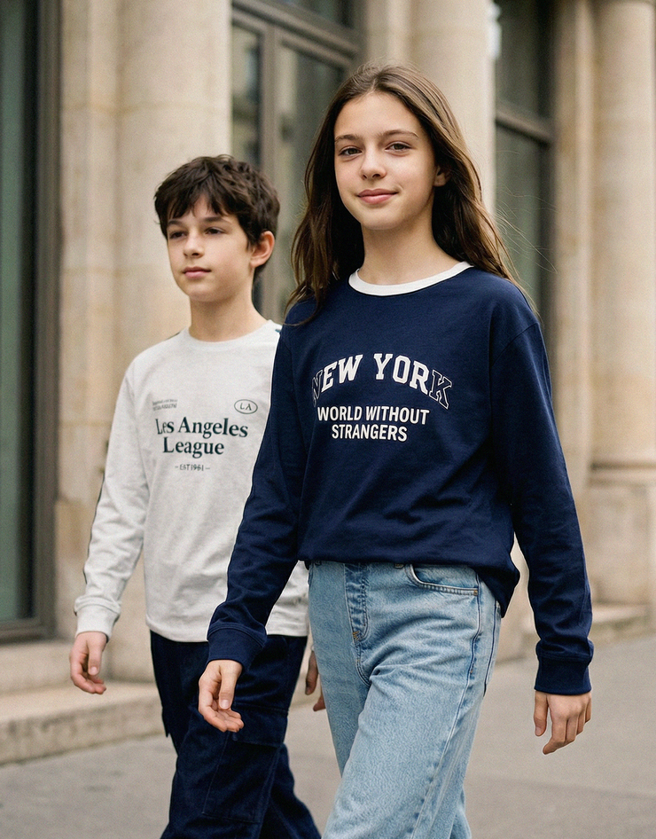 주니어 코튼 그래픽 긴팔 티셔츠