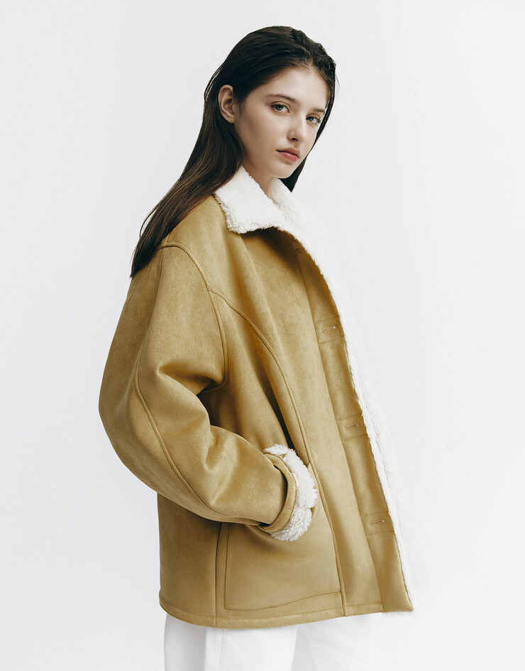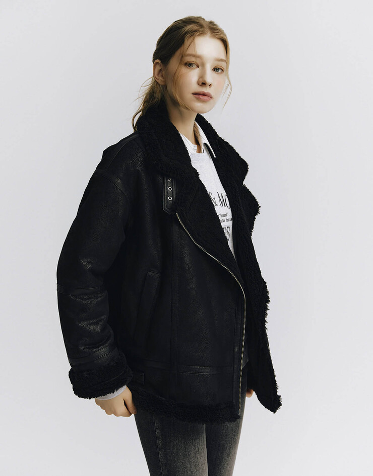 오버핏 스웨이드 퍼 무스탕