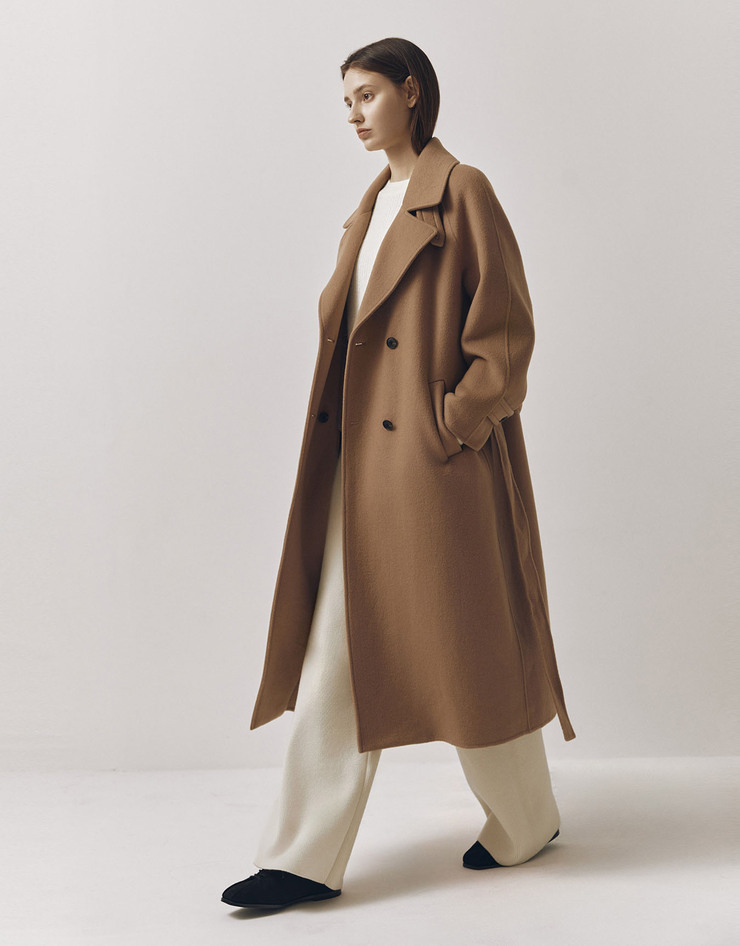 울 더블 롱코트