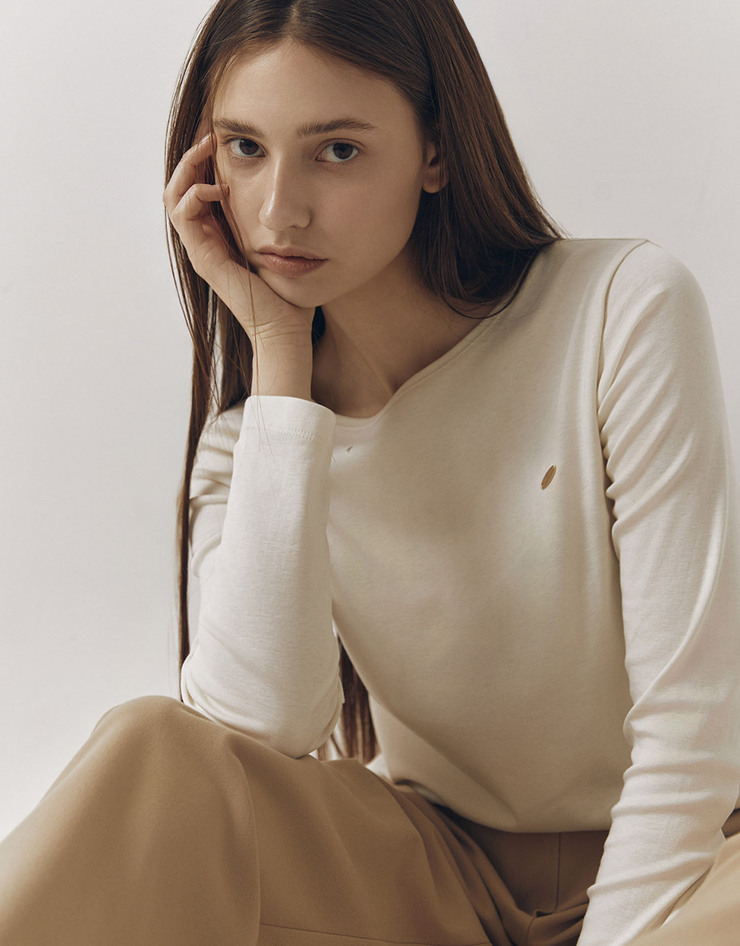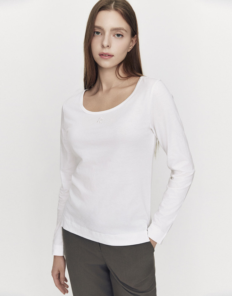 코튼 저지 스쿱넥 긴팔 티셔츠