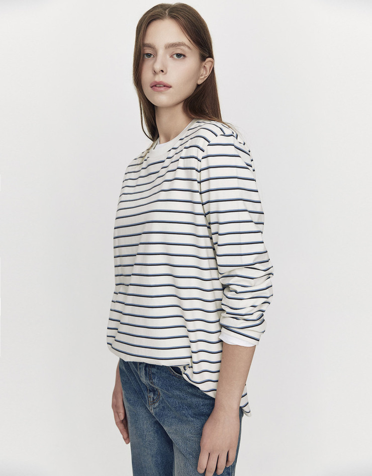 스트라이프 라운드넥 긴팔 티셔츠