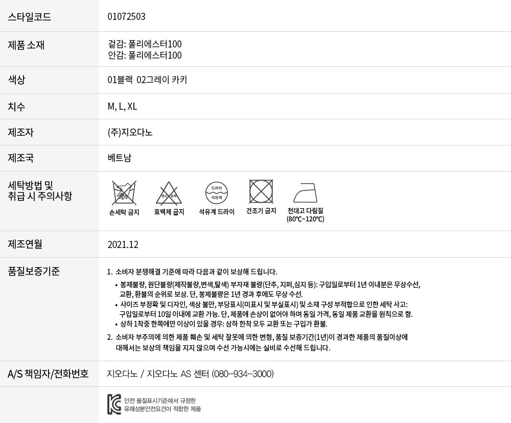 • 교환 진행시 배송비 5,000원 주문자 성함으로 입금 부탁드립니다(신한은행:267-05-028523 (주)지오다노)