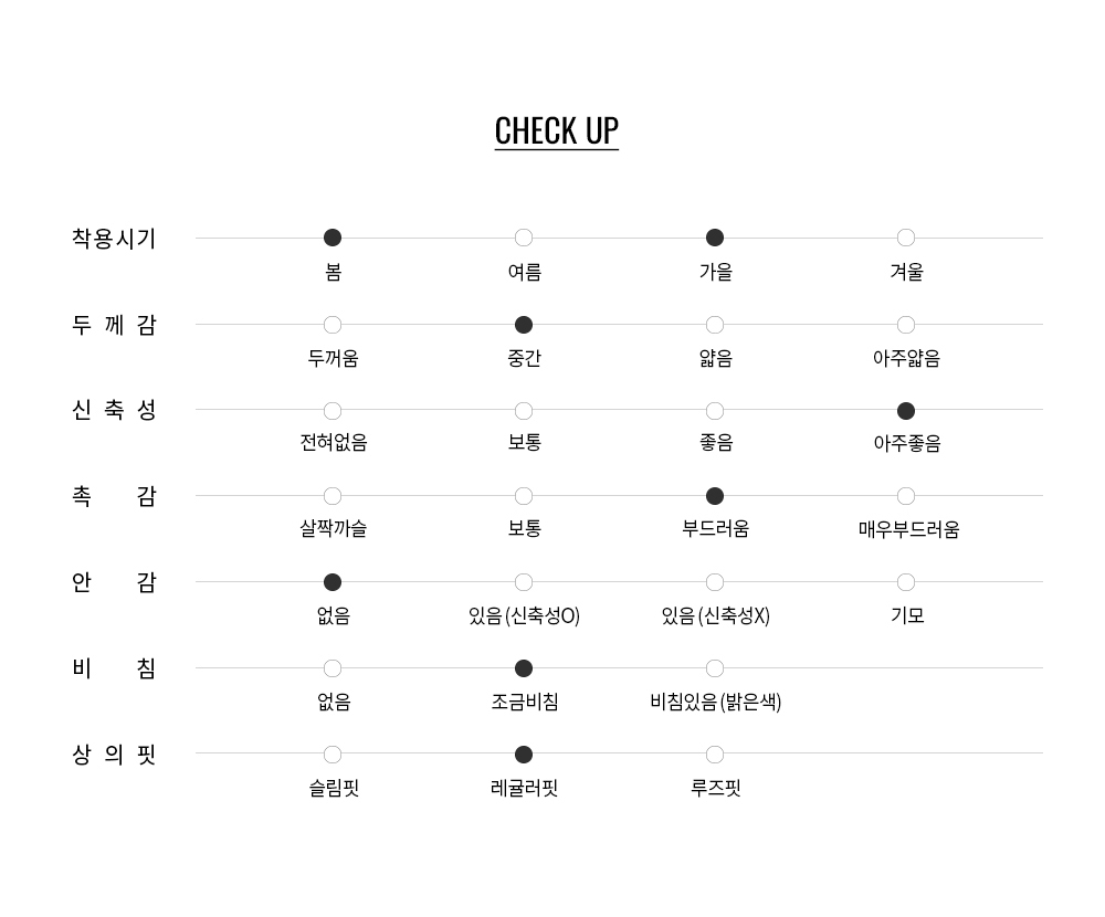 다양하게 코디하기 쉬운 컬러로 구성되어 단품으로 입으시기에 좋습니다.