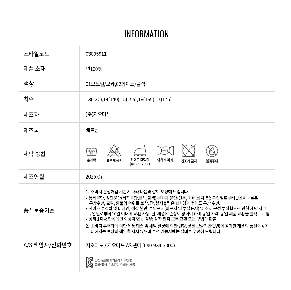 • 교환 진행시 배송비 5,000원 주문자 성함으로 입금 부탁드립니다(신한은행:267-05-028523 (주)지오다노)