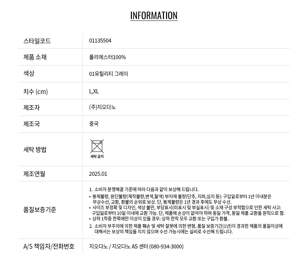 • 교환 진행시 배송비 5,000원 주문자 성함으로 입금 부탁드립니다(신한은행:267-05-028523 (주)지오다노)