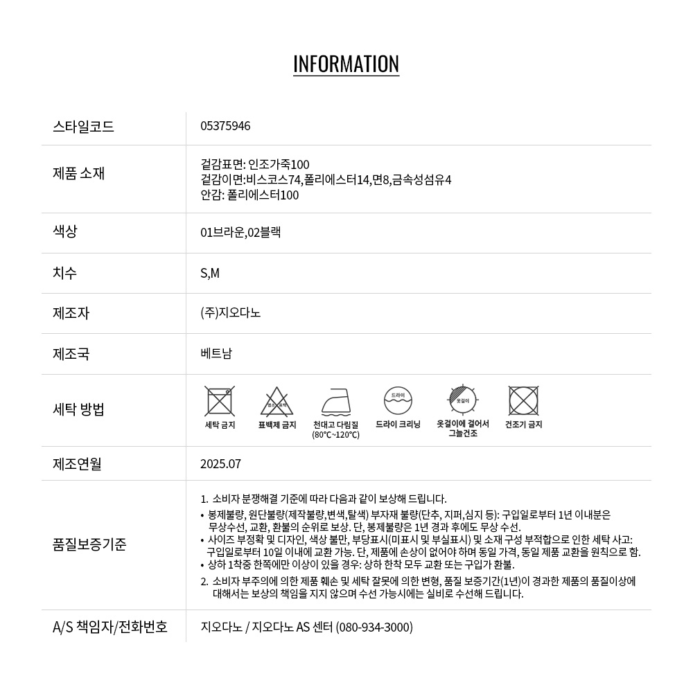 • 교환 진행시 배송비 5,000원 주문자 성함으로 입금 부탁드립니다(신한은행:267-05-028523 (주)지오다노)