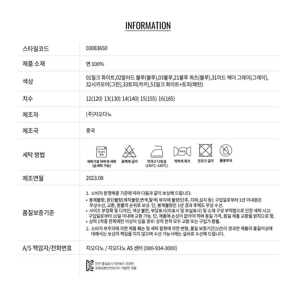 • 교환 진행시 배송비 5,000원 주문자 성함으로 입금 부탁드립니다(신한은행:267-05-028523 (주)지오다노)
