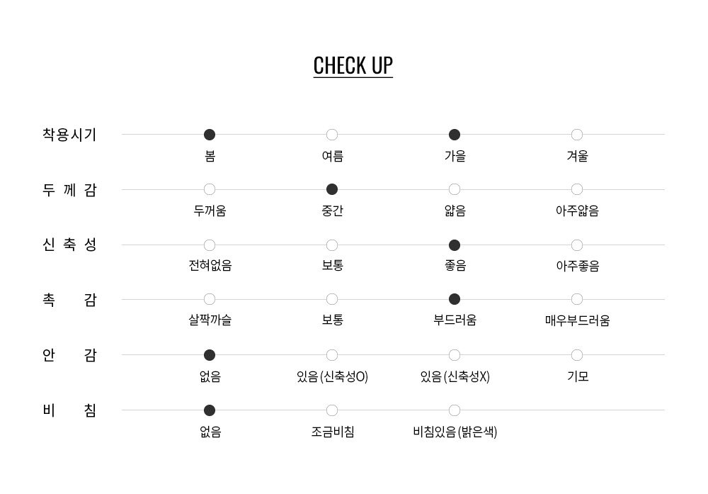 레이온 혼방으로 터치감이 우수하며 드레이프성이 돋보입니다.
