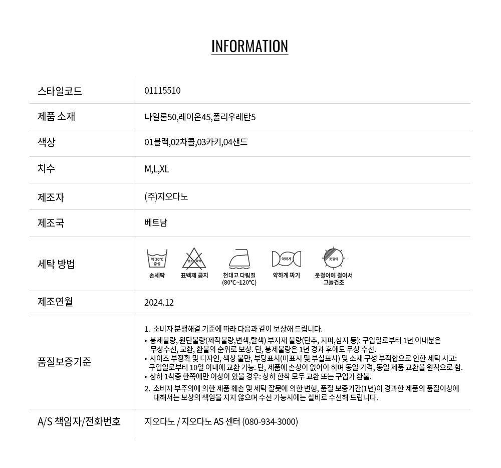 • 교환 진행시 배송비 5,000원 주문자 성함으로 입금 부탁드립니다(신한은행:267-05-028523 (주)지오다노)