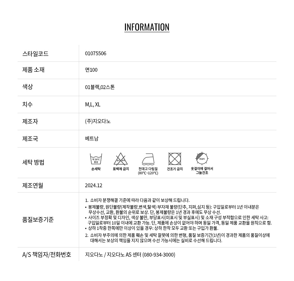 • 교환 진행시 배송비 5,000원 주문자 성함으로 입금 부탁드립니다(신한은행:267-05-028523 (주)지오다노)