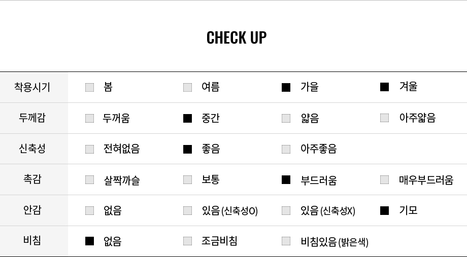 • 반품 진행시 검수 후 동일한 결제수단으로 차감 후 환불 됩니다. (부분 반품 배송비 2,500원, 전체 반품 배송비 5,000원이며, 무료배송 기준에 따라 부분반품 시에도 5,000원 발생될 수 있습니다.)