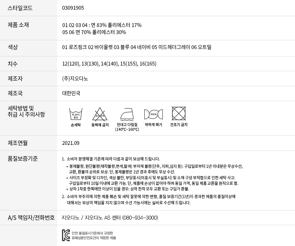 • 교환 진행시 배송비 5,000원 주문자 성함으로 입금 부탁드립니다(신한은행:267-05-028523 (주)지오다노)