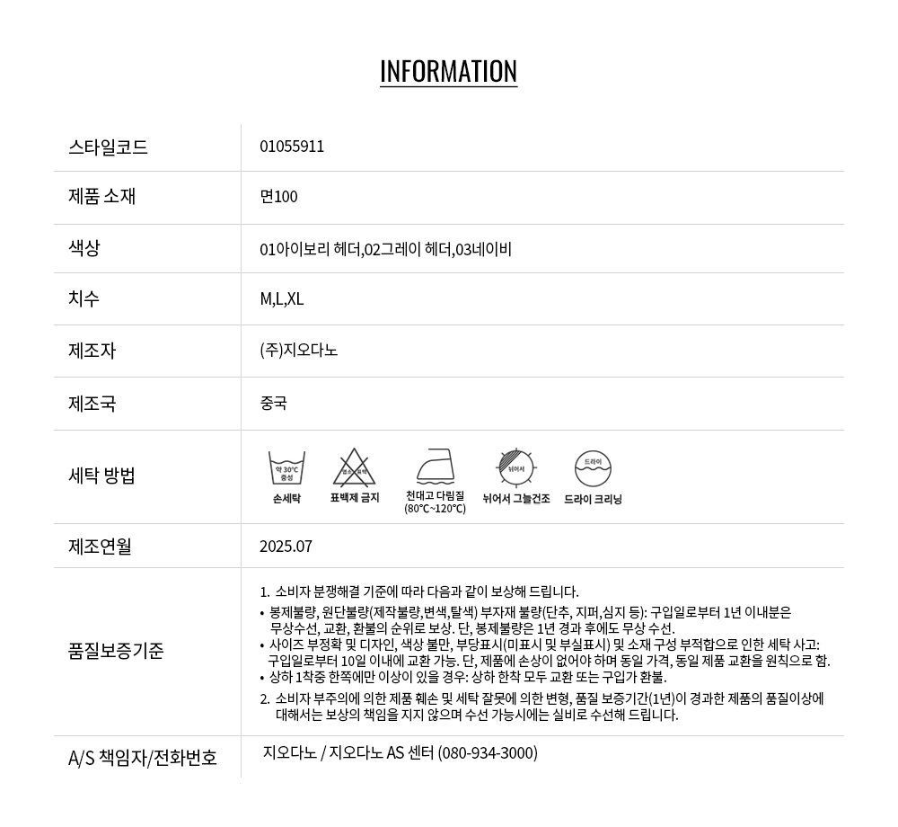 • 교환 진행시 배송비 5,000원 주문자 성함으로 입금 부탁드립니다(신한은행:267-05-028523 (주)지오다노)