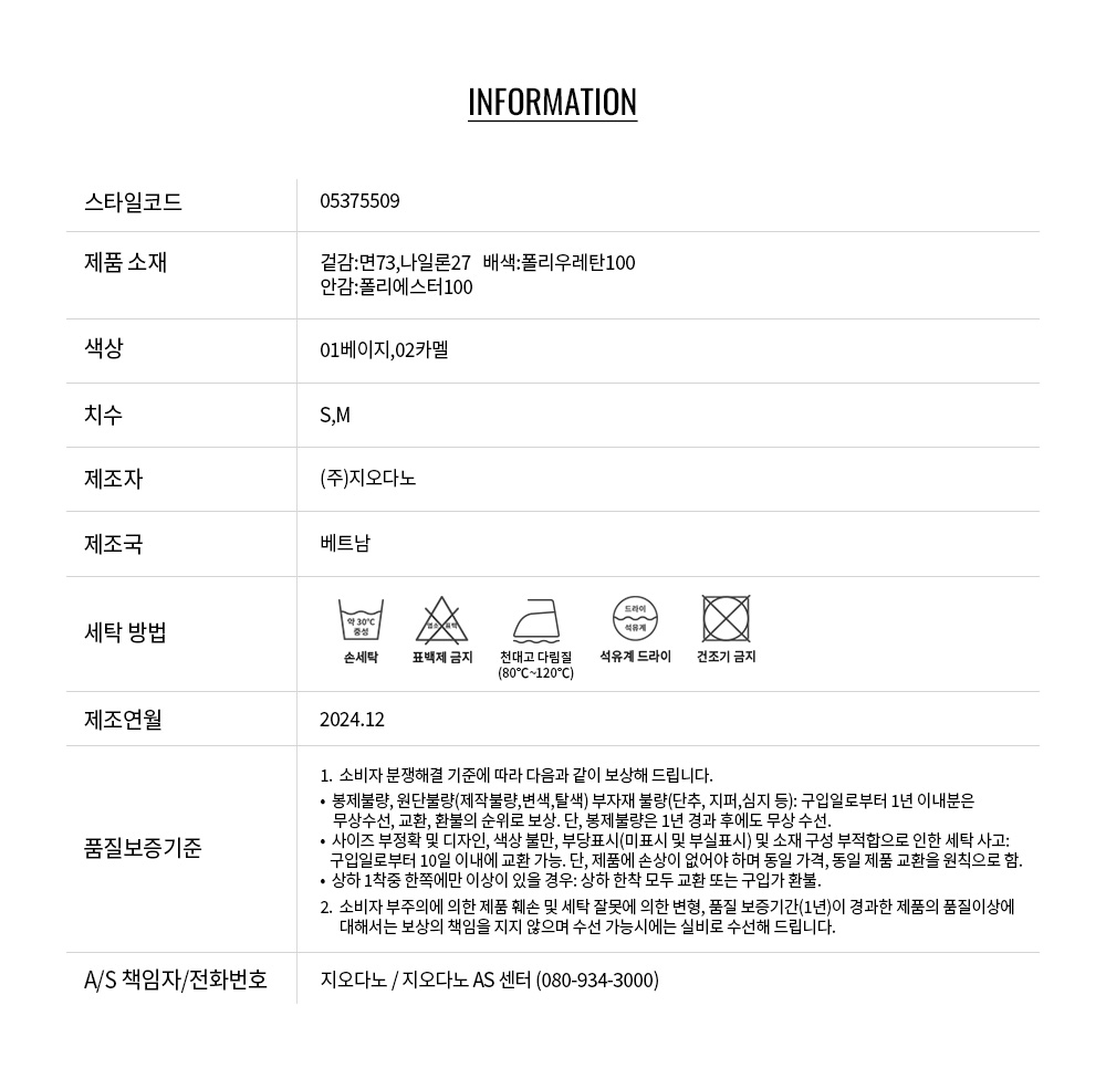 • 교환 진행시 배송비 5,000원 주문자 성함으로 입금 부탁드립니다(신한은행:267-05-028523 (주)지오다노)