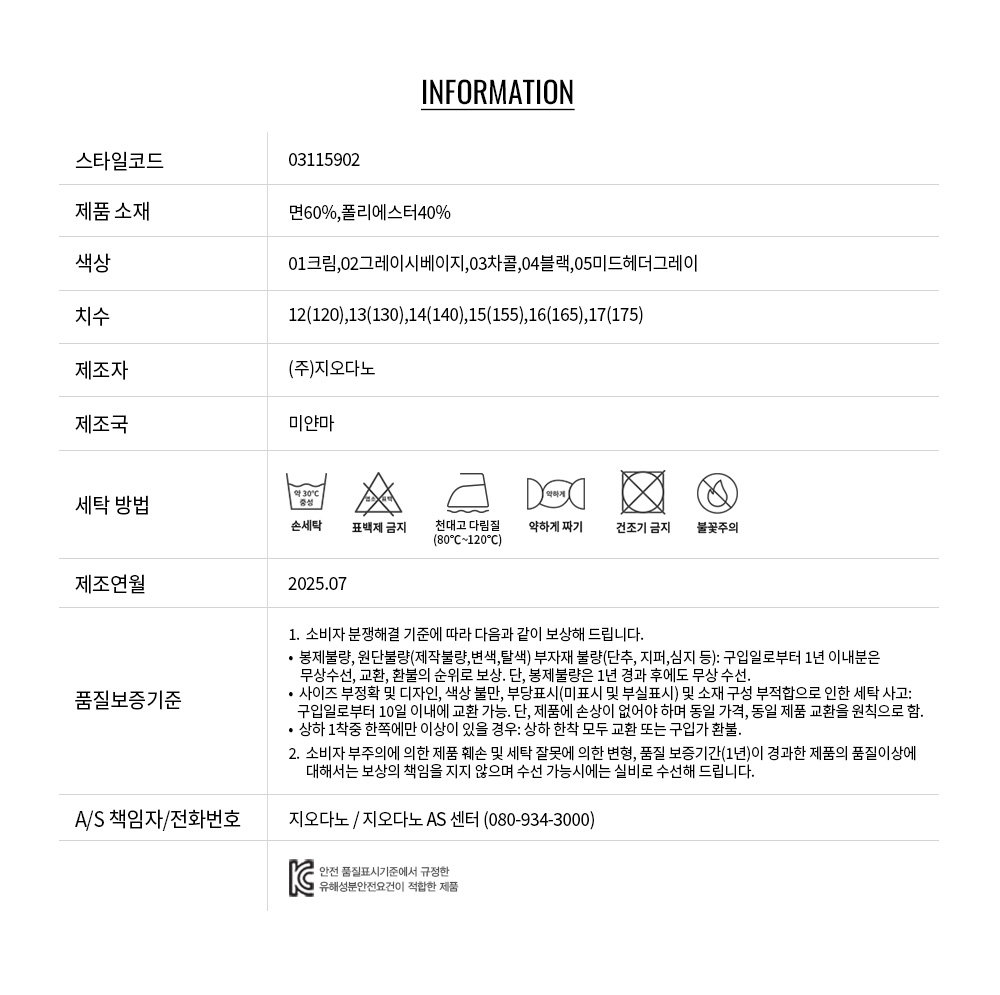 • 교환 진행시 배송비 5,000원 주문자 성함으로 입금 부탁드립니다(신한은행:267-05-028523 (주)지오다노)