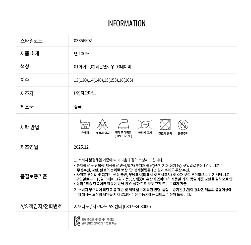 • 교환 진행시 배송비 5,000원 주문자 성함으로 입금 부탁드립니다(신한은행:267-05-028523 (주)지오다노)