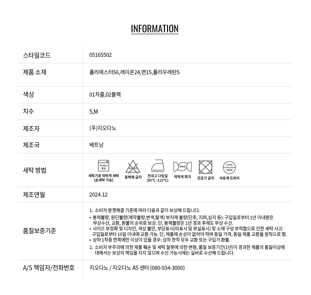 • 교환 진행시 배송비 5,000원 주문자 성함으로 입금 부탁드립니다(신한은행:267-05-028523 (주)지오다노)