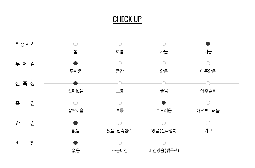고밀도 다운백을 사용하여, 털 빠짐을 최소화 하였으며, 밀착력과 보온성이 우수한 프리미엄 다운 80:20 충전재로 안전성 기준 확보 및 동물 학대와 관련된 행위를 하지 않은 RDS 인증의 다운을 사용하였습니다.