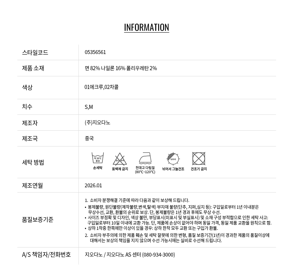 • 교환 진행시 배송비 5,000원 주문자 성함으로 입금 부탁드립니다(신한은행:267-05-028523 (주)지오다노)