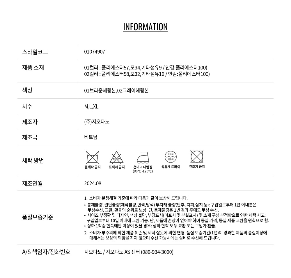 다양한 하의와 스타일링이 가능하며, 트렌드에 관계 없이 착용이 가능한 소장 가치 높은 제품입니다.