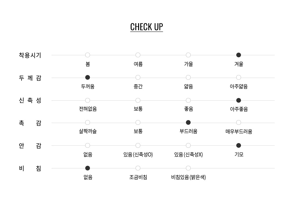 보온성이 뛰어나 FW시즌에 데일리 아이템으로 활용하기 용이합니다.