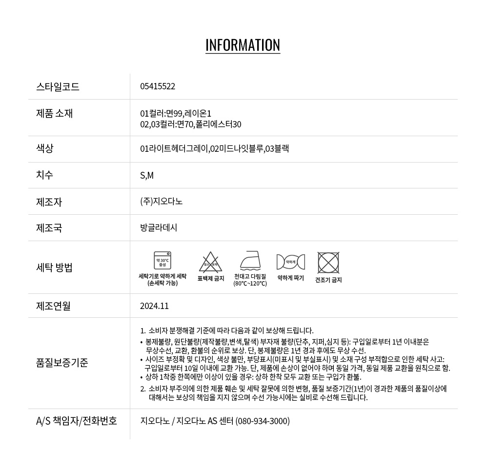 • 교환 진행시 배송비 5,000원 주문자 성함으로 입금 부탁드립니다(신한은행:267-05-028523 (주)지오다노)