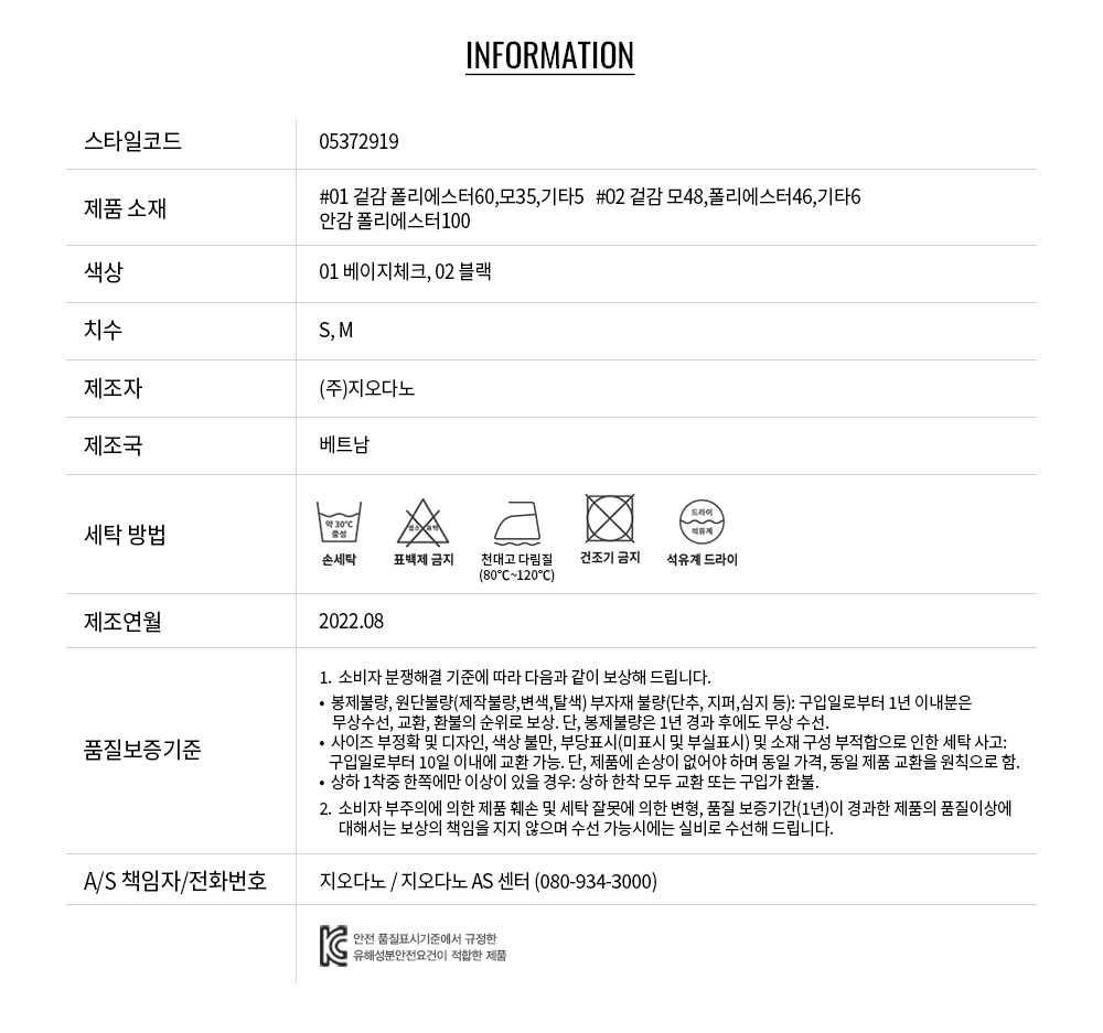 • 교환 진행시 배송비 5,000원 주문자 성함으로 입금 부탁드립니다(신한은행:267-05-028523 (주)지오다노)