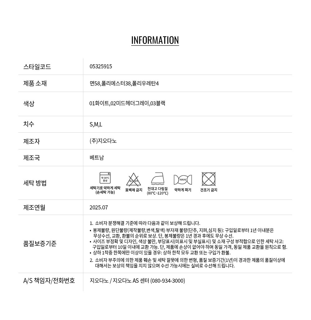 • 교환 진행시 배송비 5,000원 주문자 성함으로 입금 부탁드립니다(신한은행:267-05-028523 (주)지오다노)
