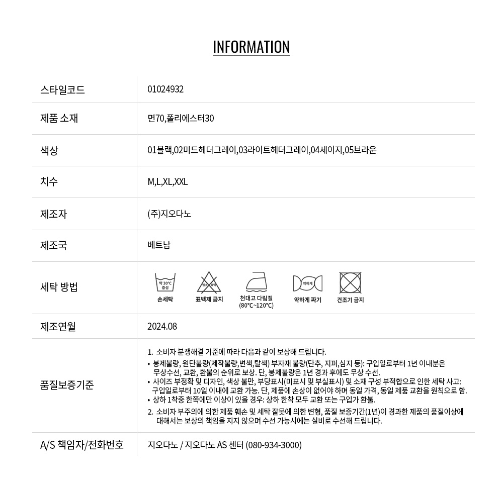 보온성이 뛰어나 FW시즌에 데일리 아이템으로 활용하기 용이합니다.