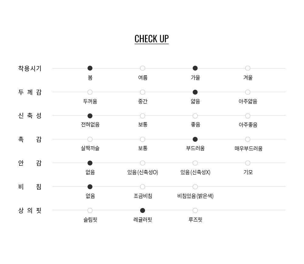 슬랙스와 매치 시 깔끔하고 세련된 핏으로 연출됩니다.