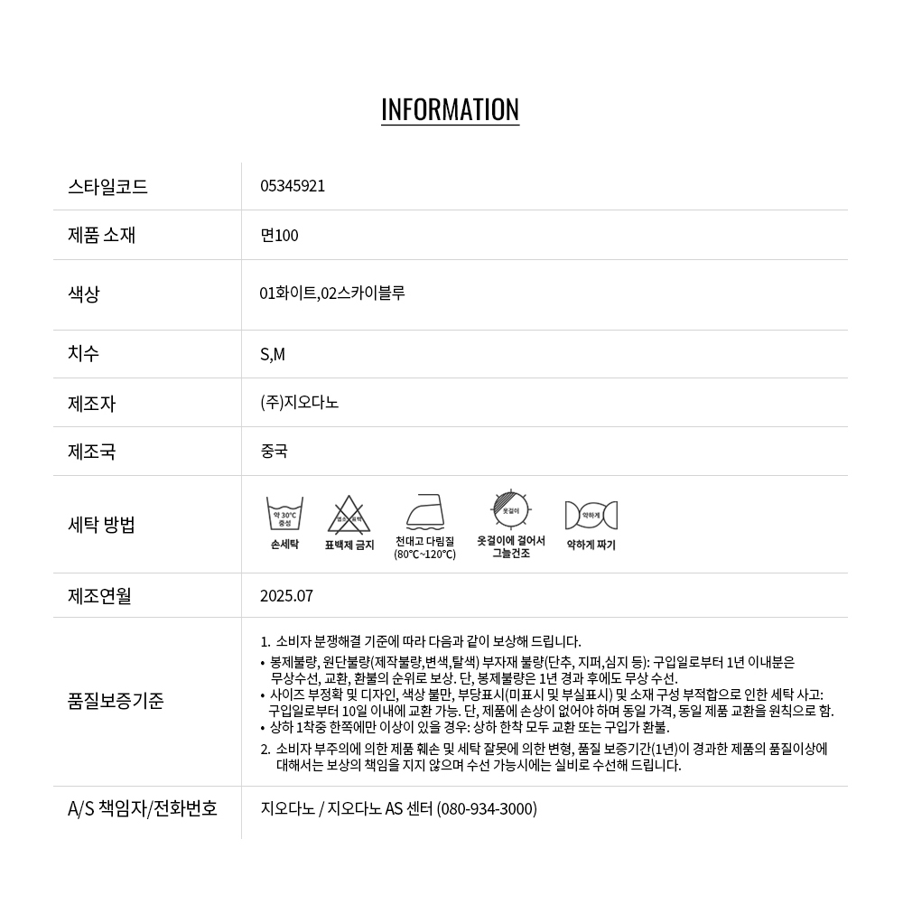 • 교환 진행시 배송비 5,000원 주문자 성함으로 입금 부탁드립니다(신한은행:267-05-028523 (주)지오다노)