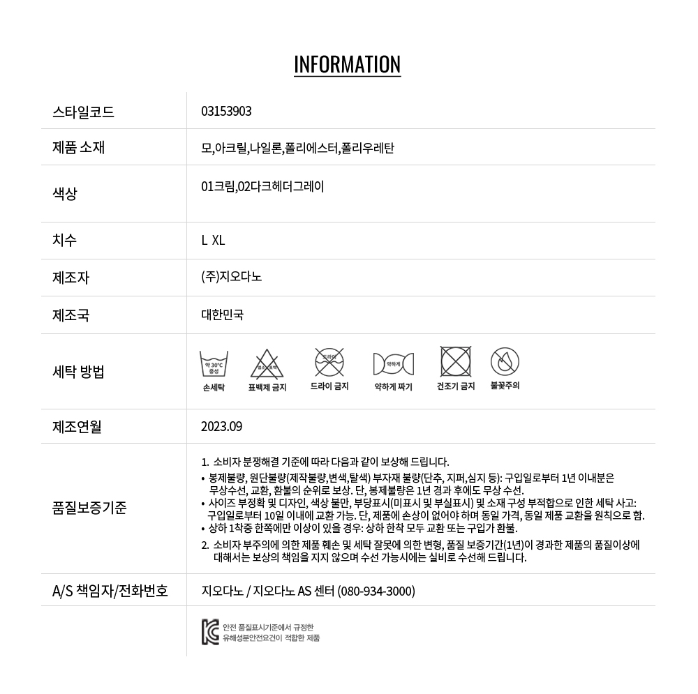 • 교환 진행시 배송비 5,000원 주문자 성함으로 입금 부탁드립니다(신한은행:267-05-028523 (주)지오다노)