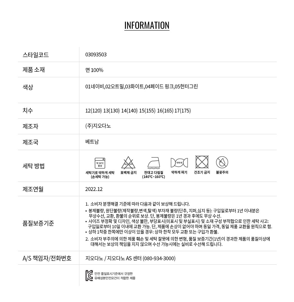• 교환 진행시 배송비 5,000원 주문자 성함으로 입금 부탁드립니다(신한은행:267-05-028523 (주)지오다노)