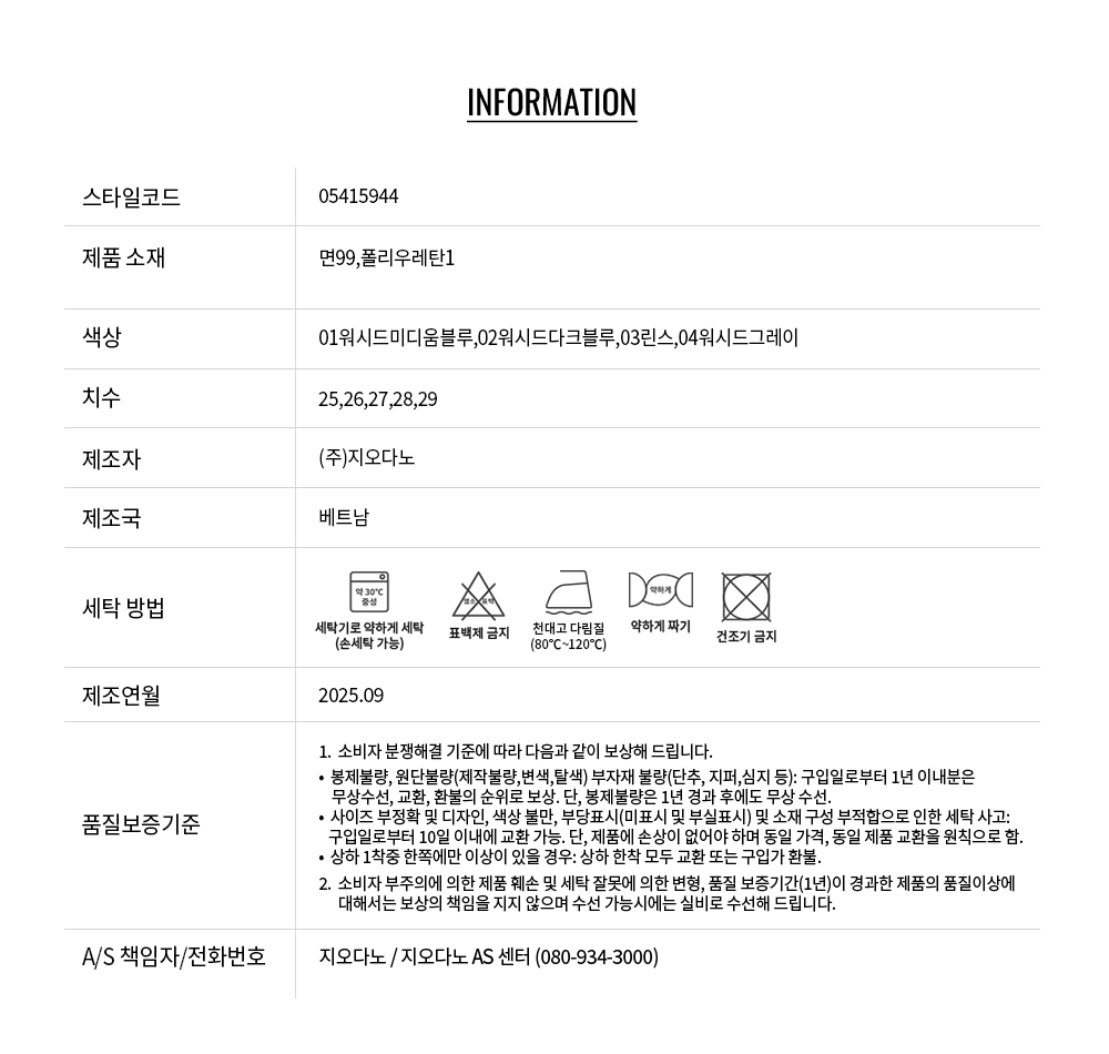 • 교환 진행시 배송비 5,000원 주문자 성함으로 입금 부탁드립니다(신한은행:267-05-028523 (주)지오다노)