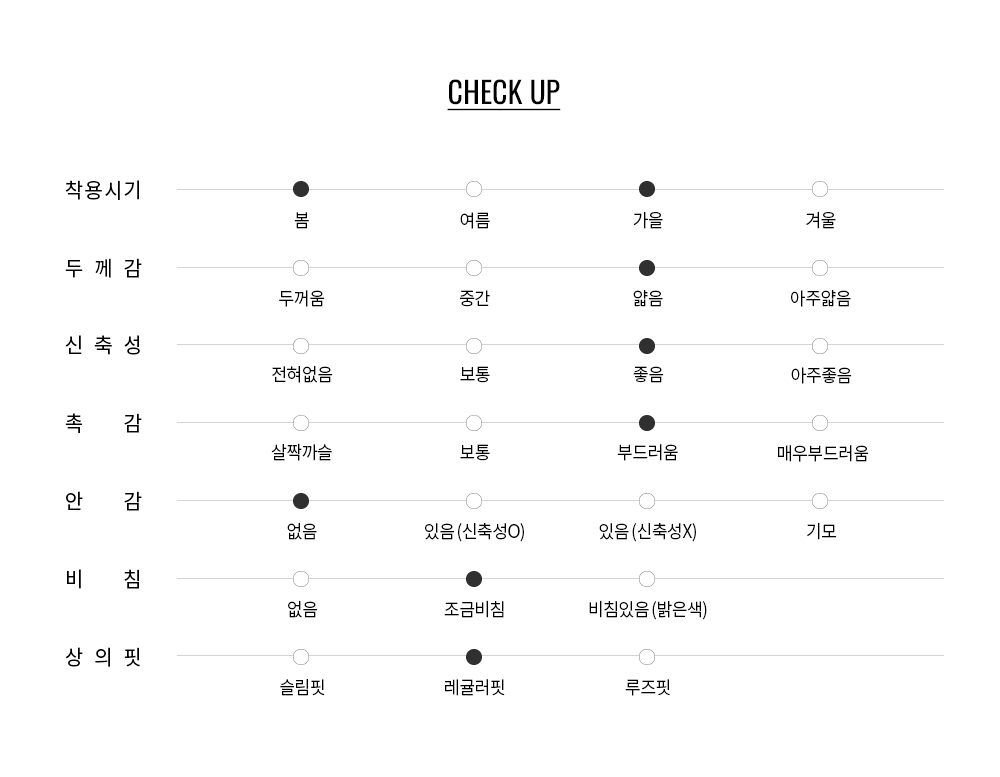 코튼, 폴리에스터, 스판 혼방 소재(58/38/4)를 사용한 2X2 립 원단으로 부드러운 터치감과 함께 적당한 신축성을 제공해 편안한 착용감으로 데일리 아이템으로 활용도가 높습니다.