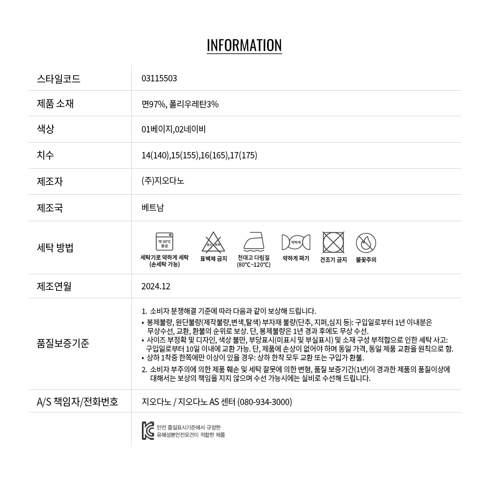 • 교환 진행시 배송비 5,000원 주문자 성함으로 입금 부탁드립니다(신한은행:267-05-028523 (주)지오다노)