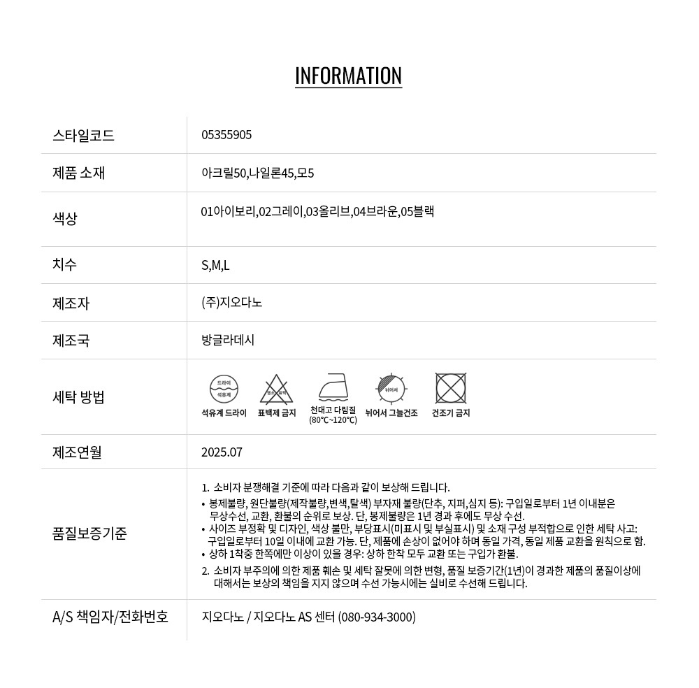 • 교환 진행시 배송비 5,000원 주문자 성함으로 입금 부탁드립니다(신한은행:267-05-028523 (주)지오다노)