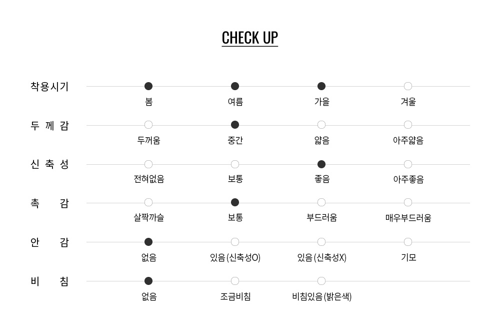 탄탄한 질감이 특징인 코튼/폰테 원단을 사용하여 피부에 닿는 촉감이 부드럽고, 형태감이 좋아 착용했을 때 깔끔한 실루엣을 만들어줍니다.