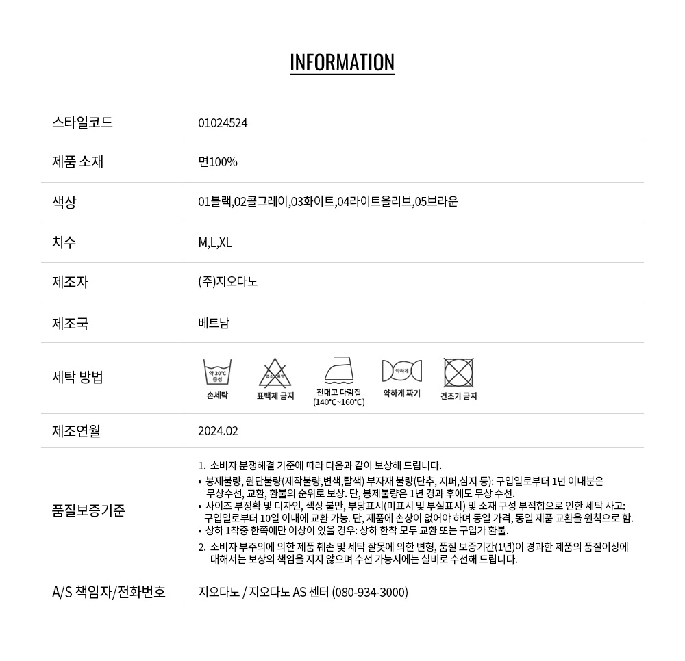 가먼트 워싱 기법을 통해 세탁 후 변형을 최소화하였습니다.
