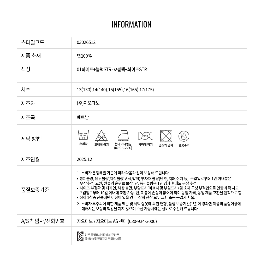 컬러는 #01 화이트/블랙 스트라이프, #02 블랙/화이트 스트라이프 두 가지로 구성되어 있으며, 데님 팬츠, 코튼 팬츠, 카고 팬츠 등 다양한 하의와 손쉽게 코디할 수 있습니다.