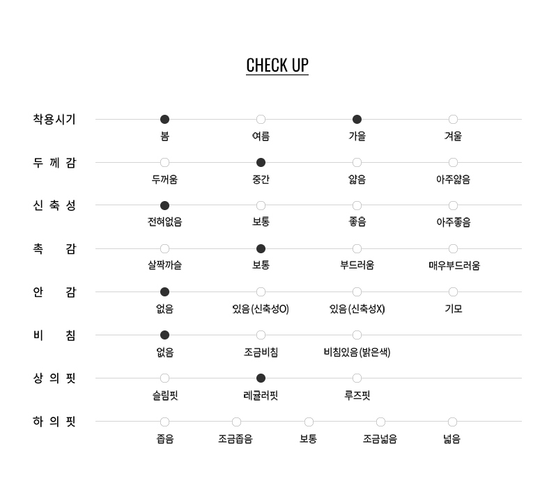 적당한 여유를 지닌 레귤러 핏으로, 단정하고 균형 잡힌 실루엣이 특징입니다.