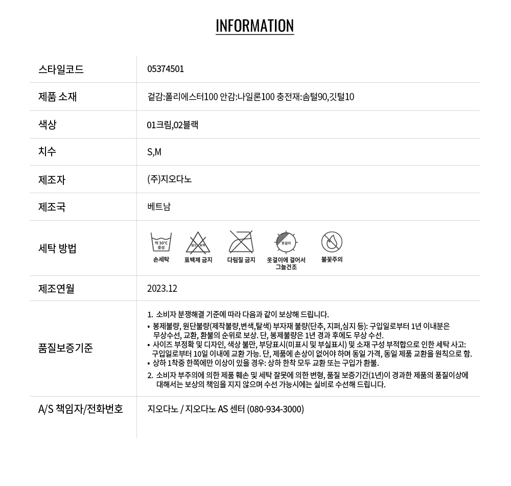 • 교환 진행시 배송비 5,000원 주문자 성함으로 입금 부탁드립니다(신한은행:267-05-028523 (주)지오다노)