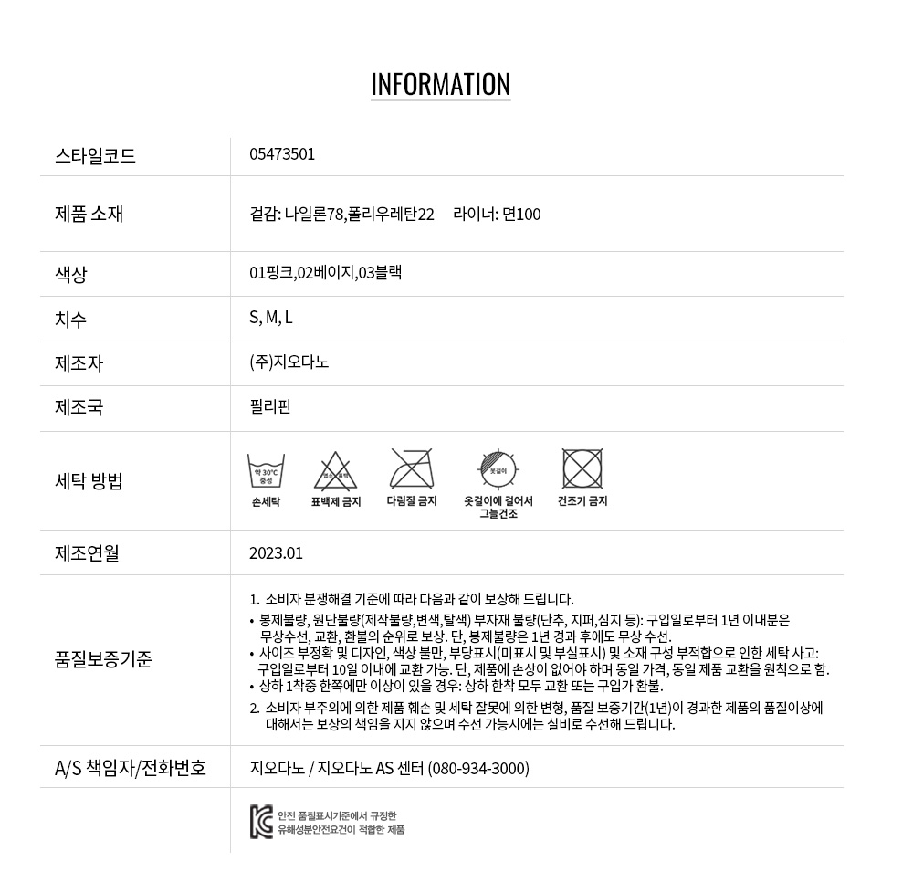 • 교환 진행시 배송비 5,000원 주문자 성함으로 입금 부탁드립니다(신한은행:267-05-028523 (주)지오다노)