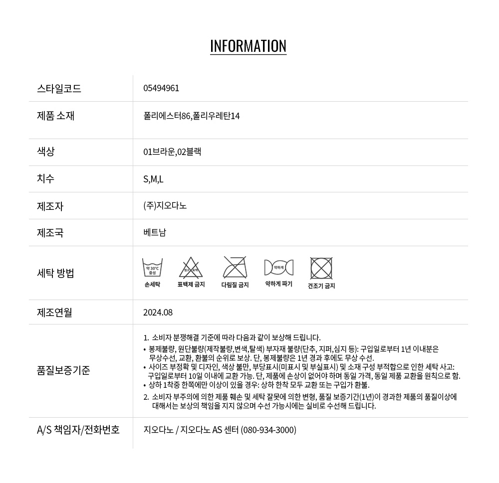 • 교환 진행시 배송비 5,000원 주문자 성함으로 입금 부탁드립니다(신한은행:267-05-028523 (주)지오다노)